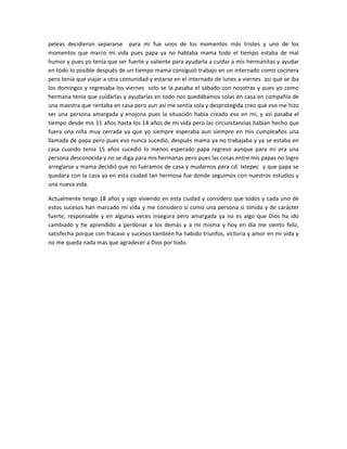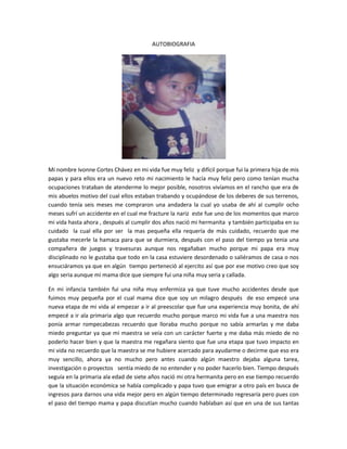 Ivonne narra su infancia y adolescencia, marcadas por la separación de sus padres y la necesidad de cuidar a sus hermanas menores. Creció en el rancho de sus abuelos y luego su madre trabajó lejos para apoyar económicamente a la familia, por lo que Ivonne se sintió sola y responsable del cuidado de sus hermanas. A los 18 años, a pesar de los desafíos, se siente agradecida por las lecciones aprendidas y por haber superado esos momentos difíciles gracias al apoyo de D