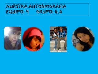 El documento presenta las autobiografías de 4 estudiantes del grupo 4.4 del plantel 16 "El Colorado". Cada estudiante detalla su nombre, fecha de nacimiento, lugar de nacimiento, escuelas a las que asistió desde el kínder hasta la secundaria, logros obtenidos y sus aspiraciones futuras.