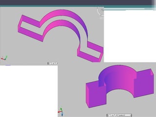 Este documento proporciona instrucciones para dibujar una figura en 3D en AutoCAD utilizando las herramientas de vista y polilínea. Explica cómo dibujar la figura, extruirla 20 unidades y renderizarla sin aristas para ver las líneas de contorno. Luego instruye usar las herramientas de vista para diseñar el objeto solicitado.