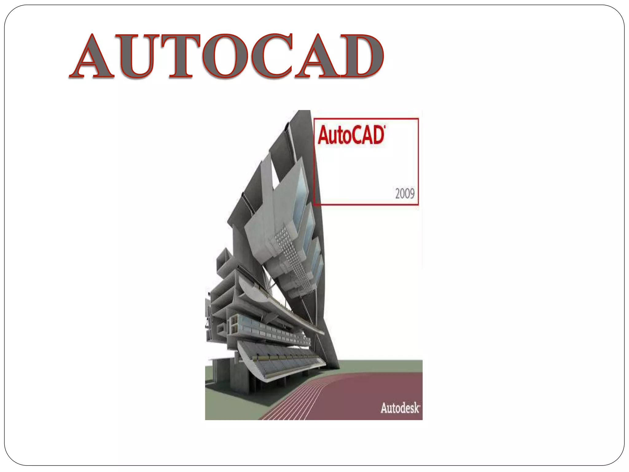 AutoCAD es un programa de diseño asistido por computadora (CAD) desarrollado por Autodesk para dibujar en 2D y 3D. Fue uno de los primeros programas CAD para computadoras personales y usa elementos básicos como líneas y círculos para crear diseños más complejos. Las versiones modernas incluyen herramientas avanzadas de modelado 3D y una interfaz gráfica de usuario.
