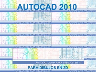 El documento presenta un curso sobre el uso de AutoCAD 2010 para dibujos en 2D. El curso consta de 7 módulos que cubren la introducción a AutoCAD, comandos básicos para crear y modificar dibujos, herramientas de ayuda, creación de bloques, referencias externas, otras aplicaciones y presentación e impresión de dibujos. También menciona otros programas de CAD como Revit Architecture, CypeCAD, Allplan, Microstation y Catia.