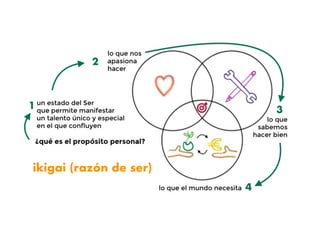 El documento explora el autoconocimiento en el liderazgo a través del concepto de ikigai, invitando a los individuos a reflexionar sobre sus formaciones, experiencias y competencias. Se presenta como una guía práctica para transformar debilidades en fortalezas y amenazas en oportunidades, promoviendo la creatividad en entornos laborales a través del juego. Además, se menciona la importancia de construir un ambiente propicio para el desarrollo personal y comunitario.