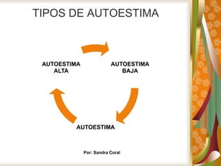 ¿POR QUÉ TENGOBAJA AUTOESTIMA? Es importante concientizarnos del por qué he llegado a tener una baja autoestima, esto la mayoría de las veces es influenciado por personas presentes en nuestra vida, que llegan a emitir opiniones acerca de mi valor como persona. Lo importante aquí es tener presente que nadie es más importante que yo mismo y no debo darle derecho a otra persona para decidir como gobernar mi vida. Por: Sandra Coral