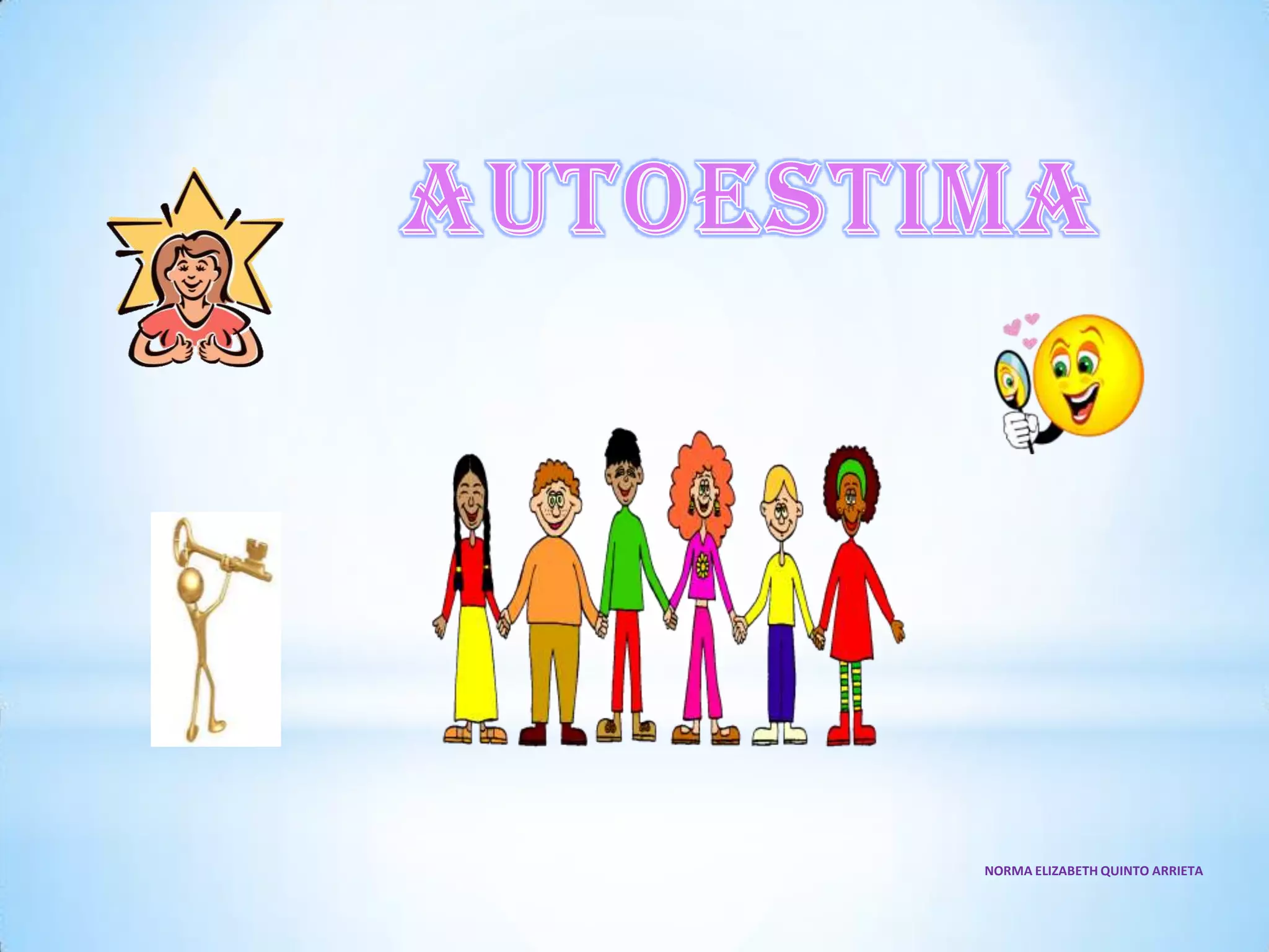 El documento define la autoestima como tener un buen concepto de uno mismo y aceptarse a uno mismo. Explica que hay tres grados de autoestima: baja, media y alta. Describe las características de personas con autoestima baja como indecisión y falta de valoración de sus talentos, mientras que las personas con autoestima alta creen que no hay nadie mejor que ellos. Finalmente, ofrece formas de mejorar la autoestima como centrarse en lo positivo, no compararse con otros y confiar en uno mismo.