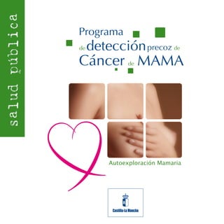 La autoexploración mamaria es una técnica en la que la mujer observa y palpa sus propios pechos para detectar cambios. Consiste en observar los pechos frente al espejo y luego palpar cada cuadrante tumbada. Es importante realizarla cada mes y acudir al médico ante cualquier anormalidad como bultos, cambios de tamaño o secreciones anormales.