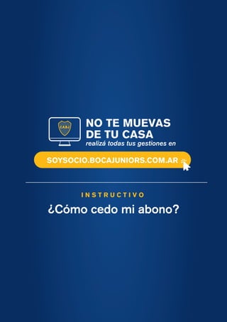 El documento instruye sobre cómo ceder un abono para partidos de fútbol desde la página web del club, indicando los pasos de iniciar sesión, seleccionar el partido, revisar los datos del abono, aceptar las condiciones y ceder la ubicación, recibiendo luego una confirmación por correo electrónico.