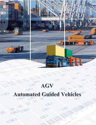 El documento describe los vehículos guiados automáticos (AGV) utilizados en terminales portuarias para mover contenedores. Explica que los AGV se usan para transportar contenedores entre los buques, el patio de contenedores y las vías férreas, y que su uso ayuda a automatizar y sincronizar las operaciones portuarias. También introduce el Lift AGV, un tipo de AGV que puede elevar contenedores para depositarlos directamente en los bastidores de almacenamiento. Finalmente, resume los componentes clave de un sistema AGV,