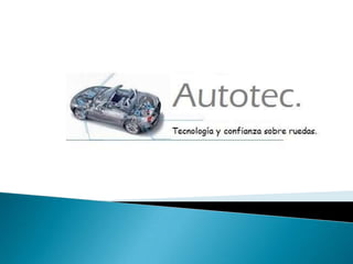 Autotec es una empresa colombiana dedicada al mantenimiento y reparación de vehículos de alta gama. Su misión es ofrecer un servicio de calidad para satisfacer las necesidades de los clientes, y su visión es convertirse en el principal centro de mantenimiento a nivel nacional e internacional para 2018. Autotec realiza diagnósticos completos, análisis de vibraciones, reparaciones mecánicas y optimizaciones de vehículos con maquinaria especializada.