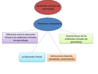 El documento aborda la educación virtual y los ambientes virtuales de aprendizaje (AVA), destacando su enfoque pedagógico que fomenta el aprendizaje autónomo y colaborativo. Se definen los AVA como entornos interactivos que facilitan la enseñanza y el aprendizaje a través de tecnologías avanzadas. Además, se menciona Moodle como una plataforma clave para la creación de cursos en línea y la importancia de los objetos virtuales de aprendizaje (OVA) como recursos didácticos.