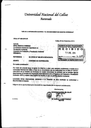 Esta las observaciones de la Comision de Convenios de la UNAC. Asi como el documento que se envio a la OEFA