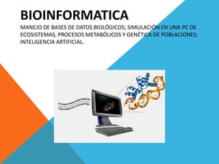 BIOINFORMATICAManejo de basesde datos biológicos; simulación en una PC de ecosistemas, procesos metabólicos y genética de poblaciones; Inteligencia artificial.