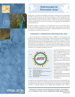 La enfermedad de Newcastle aviar es causada por un paramixovirus que causa grandes pérdidas económicas en la industria avícola. El virus puede presentarse en diferentes cepas con distintos niveles de virulencia, desde cepas lentogénicas hasta cepas altamente patógenas que causan una enfermedad aguda y letal. La clasificación, signos clínicos, vacunación e inmunidad contra la enfermedad de Newcastle son importantes para controlar esta enfermedad viral altamente contagiosa que afecta a much