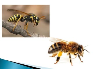 Las avispas generalmente tienen dos pares de alas, un ovopositor o aguijón, poco o ningún pelo, y no son acuáticas. Existen muchas especies de avispas, incluyendo la avispa del papel que vive en colonias cooperativas, la avispa asiática gigante que puede medir hasta 55 milímetros, y la avispa parasitoide Kollasmosoma sentum que pone sus huevos dentro de hormigas.