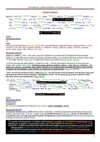 Este documento contrasta el emocionalismo con el arrepentimiento como enfoques para el avivamiento espiritual. Cita pasajes bíblicos que muestran que Dios valora el arrepentimiento sobre los rituales y emociones pasajeras. El profeta Isaías insta a Israel a lavarse, dejar el mal y hacer el bien mediante la justicia y la misericordia. El emocionalismo depende de las emociones provocadas pero no produce un cambio duradero, mientras que el arrepentimiento conlleva un cambio de acciones a trav