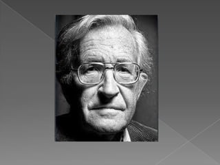 Noam Chomsky es un lingüista, filósofo y activista estadounidense que es profesor emérito de Lingüística en el MIT y una de las figuras más destacadas de la lingüística del siglo XX por sus trabajos en teoría lingüística y ciencia cognitiva, y también es reconocido por su activismo político caracterizado por la crítica del capitalismo y la política exterior de EE.UU., definiéndose a sí mismo como un anarquista o socialista libertario.
