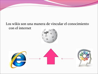 Los wikis permiten que cualquier persona edite y comparta información de manera colaborativa. Los wikis usan un sistema simplificado de marcas hipertextuales que no requiere conocimiento de HTML. Los wikis no tienen una estructura predefinida, permitiendo a los usuarios crear y vincular nuevas páginas libremente. Si bien los wikis facilitan el intercambio de conocimiento, la información debe ser evaluada críticamente dado que cualquier usuario puede editar o modificar su contenido.