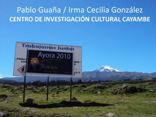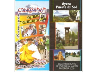 El documento describe las fiestas de Ayora de 2010 en Cayambe, Ecuador. Incluye fotos de desfiles, concursos, reinas, comidas típicas, toros populares, bandas musicales y más. Las fiestas celebran la fundación de la parroquia de Ayora en 1928 y mantienen vivas las tradiciones culturales de la región.