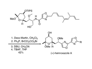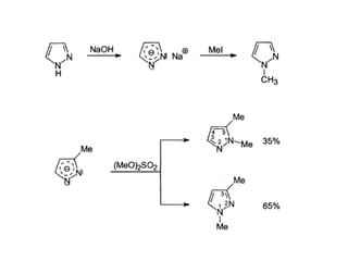 El documento presenta información sobre diferentes tipos de azoles, incluyendo pirazoles, isoxazoles, isotiazolas e imidazoles. Describe métodos para la síntesis de estos compuestos, como reacciones de cicloadición, ciclocondensación y deshidratación de compuestos carbonílicos y aminados. También menciona algunos compuestos azólicos biológicamente activos usados como fármacos o biocidas.