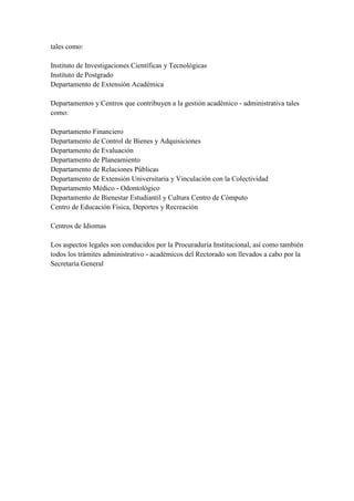 La Universidad Nacional de Chimborazo es una universidad pública sin fines de lucro ubicada en Riobamba, Ecuador. Está constituida por cuatro facultades y varios institutos y departamentos que contribuyen a la gestión académica y administrativa. Su accionar está dirigido por el Rectorado y los Vicerrectorados Académico, Administrativo y de Postgrado e Investigación.