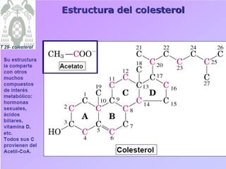 El documento describe las etapas del metabolismo de los lípidos, incluyendo la movilización de los triglicéridos adiposos, su circulación en la sangre, consumo por los músculos, activación y traslocación a la mitocondria para su β-oxidación, produciendo acetil-CoA y equivalentes reducidos que alimentan la cadena respiratoria.