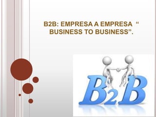 El documento describe las ventajas del comercio B2B (Business to Business) entre empresas. El B2B permite reducir costos y aumentar ingresos al facilitar que las empresas consulten existencias de proveedores y realicen pedidos en línea. También agiliza el proceso de contratación a través de pedidos en tiempo real en la página web. Entre las ventajas se incluyen la reducción de tiempos de aprovisionamiento, inventarios y ciclos de fabricación, además de mejorar el servicio a clientes y permitir el acceso a una mayor varied