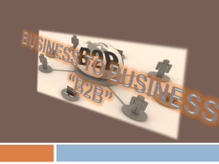El documento describe el comercio electrónico entre empresas (B2B) a través de Internet. El B2B permite realizar transacciones como presentación de propuestas, negociación de precios, cierre de ventas y despacho de pedidos de manera más eficiente y económica. El B2B representa actualmente el sector más importante del comercio electrónico y se prevé que su crecimiento sea exponencial en los próximos años.