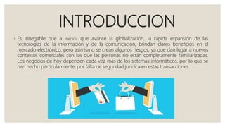 El documento describe el comercio electrónico B2C, que implica que las empresas lleguen directamente a los consumidores a través de Internet. Explica que B2C se refiere a la estrategia de negocios para llegar a clientes individuales. También discute las ventajas del B2C como compras más rápidas y cómodas, y los desafíos que enfrenta como la seguridad de pagos.