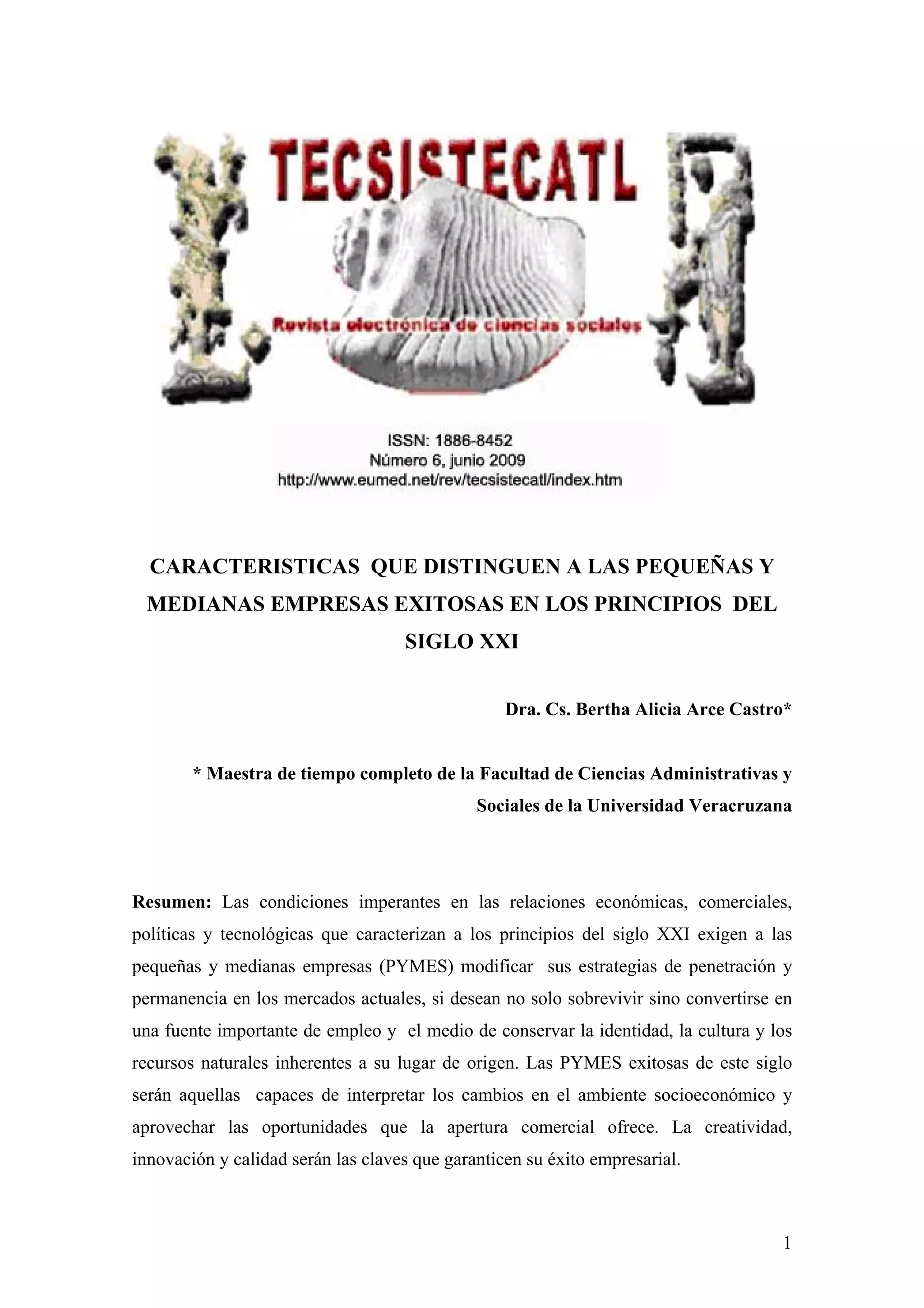Las pequeñas y medianas empresas exitosas en el siglo 21 se caracterizan por (1) ser inteligentes e interpretar los cambios en el ambiente, (2) fomentar la creatividad e innovación para ofrecer nuevos productos de calidad, y (3) valorar el talento humano y convertirlo en capital intelectual.