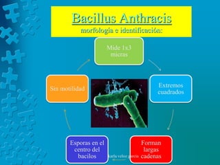 Este documento compara Bacillus y Clostridium. Bacillus incluye especies aeróbicas como B. anthracis, mientras que Clostridium incluye especies anaeróbicas como C. tetani. B. anthracis causa el ántrax y forma esporas resistentes, mientras que C. tetani causa el tétanos mediante la producción de toxinas. El diagnóstico y tratamiento de estas enfermedades incluye pruebas de laboratorio, vacunación e inmunización.