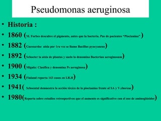 Este documento resume las características de varios bacilos gram negativos no fermentadores como Pseudomonas aeruginosa, Acinetobacter baumanii-calcoaceticum, Burkholderia cepacia y Stenotrophomonas maltophilia. Describe sus factores de virulencia, mecanismos de resistencia, fuentes de infección y presentaciones clínicas asociadas, haciendo énfasis en la importancia de la detección rápida e inicio oportuno del tratamiento antimicrobiano.