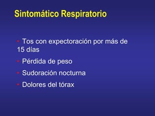 El documento describe los procedimientos para realizar un diagnóstico de laboratorio de tuberculosis, incluyendo la baciloscopía, la cual es rápida, de bajo costo y detecta la mayoría de los casos infecciosos. Explica cómo recolectar y procesar muestras de esputo de manera adecuada para asegurar la precisión de los resultados, así como los pasos para realizar la coloración de Ziehl-Neelsen y clasificar los resultados.