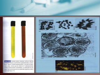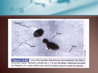El documento describe las características de los microorganismos celulares. Las procariotas como las bacterias y arqueas carecen de núcleo y organelos. Las eubacterias incluyen bacterias verdaderas que son unicelulares y microscópicas con diversas formas. Las arqueobacterias son procariotas extremófilas que habitan ambientes hostiles y se diferencian de otras células en la composición de sus membranas y fosfolípidos.