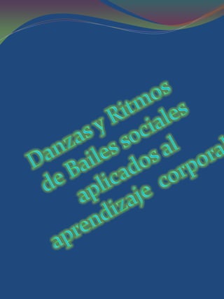 La cumbia es un género musical y baile colombiano, mientras que la salsa se originó en Nueva York al mezclar sonidos como el son montuno y el mambo. El tango nació a fines del siglo XIX en los suburbios de Buenos Aires asociado con burdeles, y el rock and roll es un baile alegre y rápido caracterizado por movimientos altos y precisos.