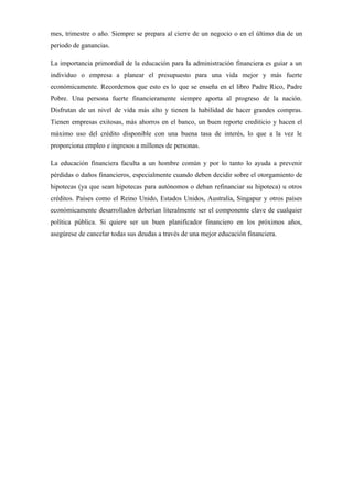 Un balance financiero es un reporte que muestra la condición financiera de un negocio en un momento dado, incluyendo sus activos, pasivos y capital. Reporta las cantidades de los activos de un lado y los pasivos del otro. También compara las ganancias y pérdidas a lo largo del tiempo para mostrar si el negocio está mejorando o empeorando financieramente. Un balance financiero, junto con informes de ingresos y flujos de efectivo, ayudan a los contables y gerentes a monitorear y planear las finanzas de un negocio