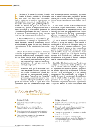 El documento analiza los elementos clave de un Balanced Scorecard exitoso. Explica que debe incluir objetivos estratégicos relacionados a través de diferentes perspectivas como la financiera, del cliente, interna y de aprendizaje. También destaca la importancia de los mapas estratégicos para visualizar la estrategia de una manera sencilla. Finalmente, enfatiza que una implementación exitosa requiere tener un modelo simple, un lenguaje común, un equipo líder que dirija el proyecto y la participación de diferentes personas de la organización.