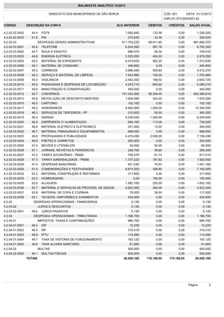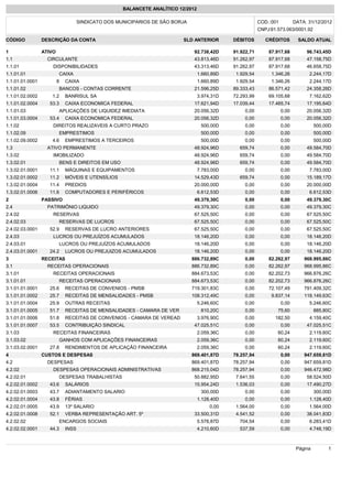 Este documento presenta el balance analítico del Sindicato de Municiparios de São Borja para el año 2012. Muestra los activos, pasivos y capital del sindicato, así como los ingresos y gastos. Los principales activos son los bienes en uso como muebles, edificios y computadoras. Los ingresos provienen principalmente de convenios y cuotas de afiliados. La mayor parte de los gastos son gastos operacionales como salarios, servicios públicos y convenios con otras organizaciones.
