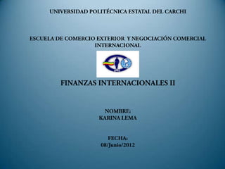 La balanza de pagos registra todas las transacciones económicas de un país con el resto del mundo en un período determinado. Consta de tres cuentas: la cuenta corriente, la cuenta de capital y la cuenta de reservas oficiales. Permite identificar los desequilibrios externos de un país y sus causas.