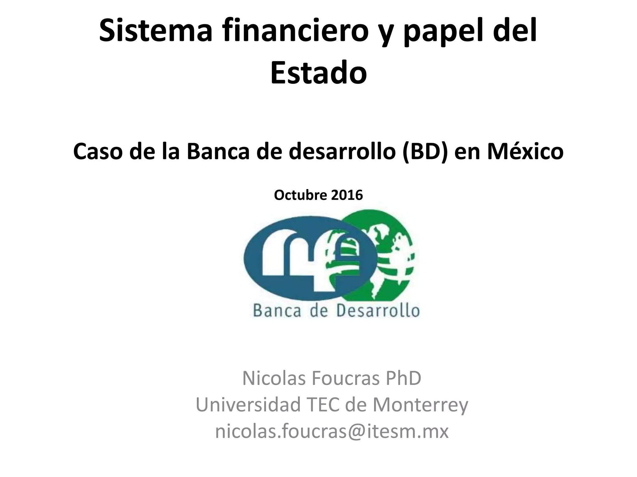 Este documento describe el papel de la banca de desarrollo en México y otros países. Explica que la banca de desarrollo es importante para proveer financiamiento a sectores que no tienen acceso a la banca comercial, pero que en México la banca de desarrollo ahora tiende a prestar a empresas grandes y maduras en lugar de apoyar a pequeñas empresas y regiones marginadas. También analiza otros bancos de desarrollo como el Banco Mundial, BID y BEI, y argumenta que el modelo neoliberal ha reducido el acceso