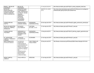 Este documento resume varias becas disponibles para estudios de posgrado en el extranjero. Entre ellas se encuentran becas CONACYT-OEA-AMEXCID para maestrías en ciencias e ingeniería en México, becas del GIO-UPM para maestrías en España, becas OEA-CEFRAL para maestrías en educación, becas Fulbright para maestrías en Estados Unidos, y becas en Barbados, Trinidad y Tobago, Jamaica, Brasil, Alemania y Tailandia para estudios en campos como educación, economía, ingeniería ag