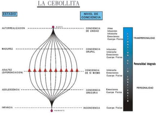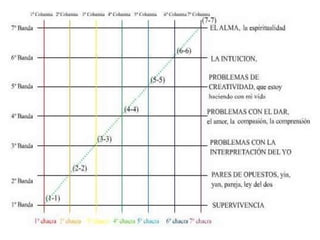 El documento describe la organización del cerebro en bandas y columnas como un modelo para entender su funcionamiento. Se explica que las bandas representan el cómo se expresan los conflictos en el tiempo a través de las interneuronas en el movimiento horizontal, mientras que las columnas representan el dónde se expresan a través de la estructuración vertical de la corteza. El cruce de bandas y columnas forma puntos que pueden indicar correlaciones psiconeuroendocrinas relacionadas con diferentes tipos de conflicto.