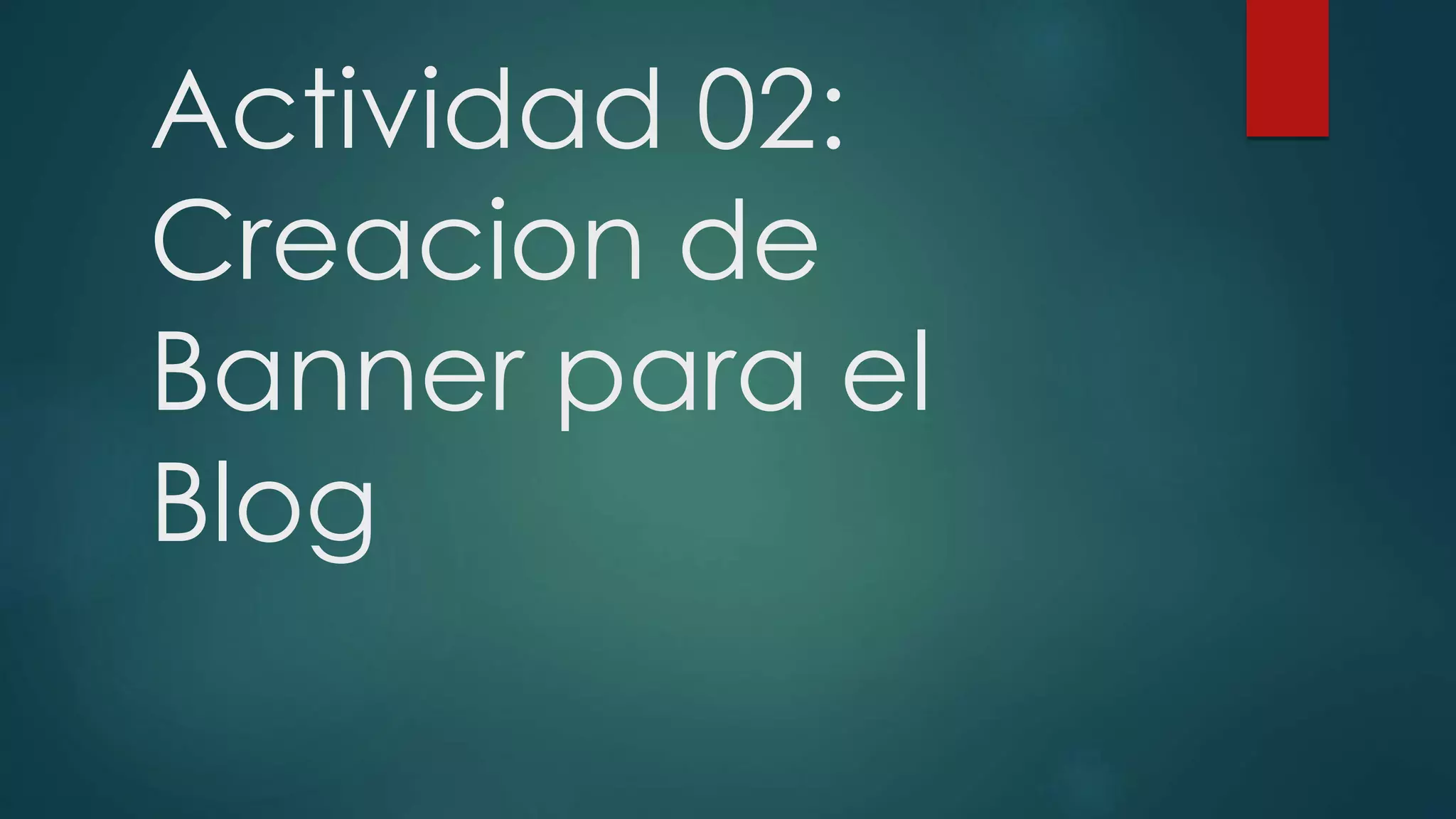 La actividad consistió en crear un banner para un blog usando Photoshop siguiendo las medidas y parámetros indicados por el profesor. Los estudiantes editaron y diseñaron el banner usando imágenes preseleccionadas, personalizando el estilo final de cada banner de acuerdo a sus preferencias.