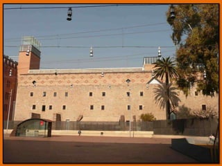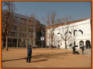 El documento describe varios museos, salas de exposiciones y edificios históricos ubicados en el barrio de El Raval en Barcelona, incluyendo La Casa de la Caritat, el Centre de Cultura Contemporània, el Museu d'Art Contemporani, el Convent dels Angels, el Hospital de la Santa Creu, la Biblioteca de Catalunya y el Monasterio de Sant Pau del Camp. También menciona las Atarazanas Reales y varias murallas históricas de la ciudad.