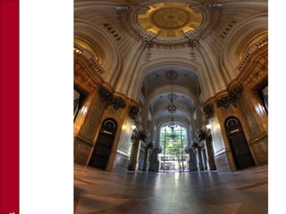 El Palacio Barolo en Buenos Aires fue diseñado por el arquitecto Mario Palanti como un homenaje a la obra maestra de Dante Alighieri, La Divina Comedia. El edificio de 100 metros de altura y 22 pisos representa simbólicamente los 100 cantos y las estrofas del poema a través de su estructura y decoración. Fue encargado por el empresario Luis Barolo para albergar los restos de Dante, aunque este plan finalmente no se concretó. El Palacio Barolo continúa fascinando a los visitantes