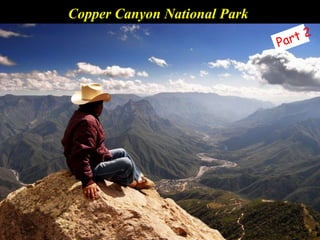El documento se refiere al Parque Nacional Barrancas del Cobre, también conocido como Copper Canyon National Park. Se menciona que todas las imágenes incluidas fueron descargadas de internet.