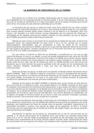 La barrera de frecuencia de la Tierra es un campo electromagnético que impide que la humanidad recuerde vidas pasadas y contactos estelares. Se estableció originalmente hace 535,000 años para aislar a la Tierra de grupos rebeldes, y actualmente es alimentada por redes de comunicación que emiten señales subliminales. Romper la barrera requiere técnicas que aumenten la energía del cuerpo humano y permitan emitir frecuencias que la atraviesen.