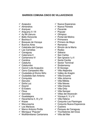 BARRIOS COMUNA CINCODE VILLAVICENCIO