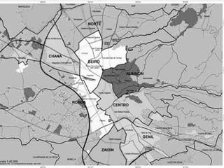 Este documento resume la historia de las viviendas sociales en Granada, España desde 1853 hasta la actualidad. Detalla algunos barrios problemáticos como Almanjáyar y La Chana y sus desafíos. Aunque estos barrios tuvieron problemas iniciales, ahora albergan a trabajadores que viven dignamente y en comunidad. El documento concluye que es necesaria más acción para apoyar a los más vulnerables y restaurar la dignidad en estos barrios ignorados.
