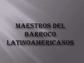 El documento trata sobre el movimiento literario del Barroco en América Latina durante los siglos XVI y XVII. El Barroco surgió en España y se adaptó a las nuevas condiciones del continente americano, destacando en géneros como la literatura, la música, la arquitectura y las artes plásticas. Dentro de la literatura barroca en Latinoamérica, sobresalen figuras como Sor Juana Inés de la Cruz, el Lunarejo y Juan Ruiz de Alarcón.