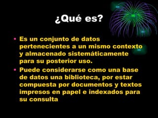 Este documento describe los elementos fundamentales de una base de datos, incluyendo tablas para organizar datos, consultas para acceder y modificar datos, formularios para introducir y mostrar datos, e informes para imprimir datos de la base de datos de forma personalizada.