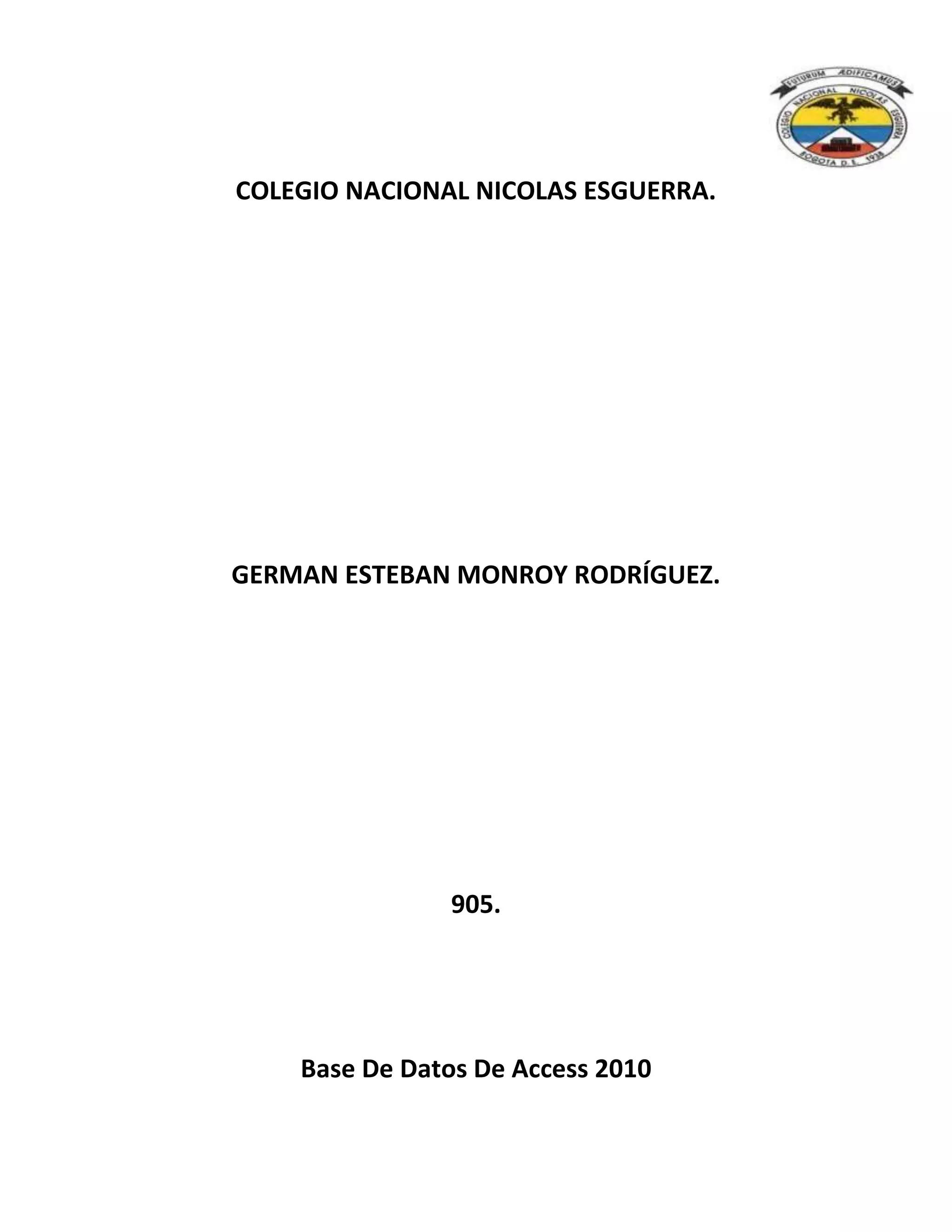 Este documento describe los pasos para crear una base de datos en Access 2010 para un negocio de instrumentos musicales llamado Instrumentos Monroy. Incluye instrucciones para crear 4 tablas - una para la información de contacto de la empresa, otra para los empleados, otra para los productos y otra para los gastos. Detalla cómo nombrar y diseñar cada tabla y llenarla con datos.